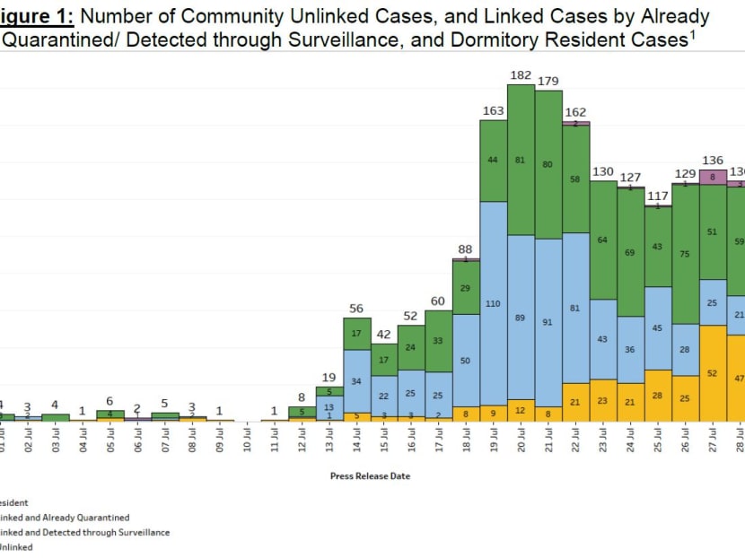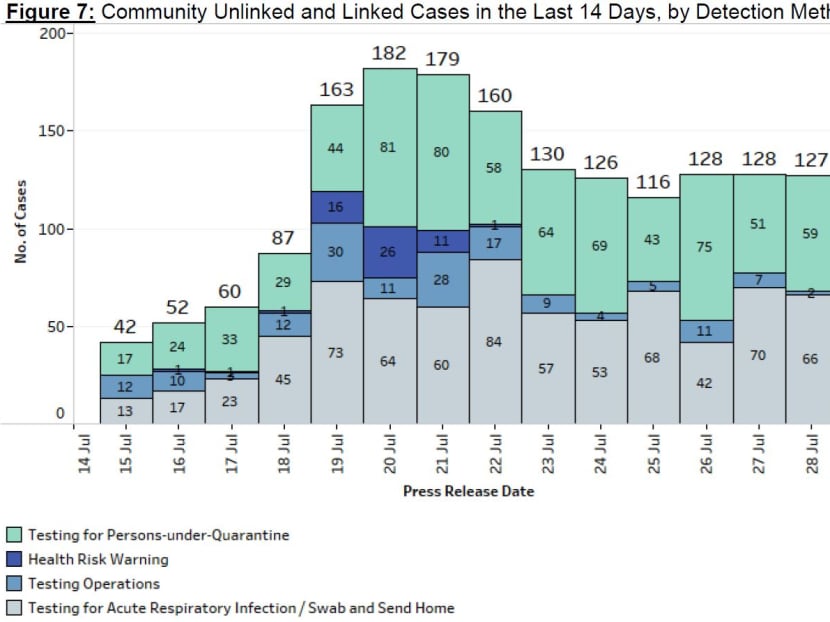 The number of cases in the community with no known sources of infection has also jumped from 45 in the week before to 217 in the past week.
