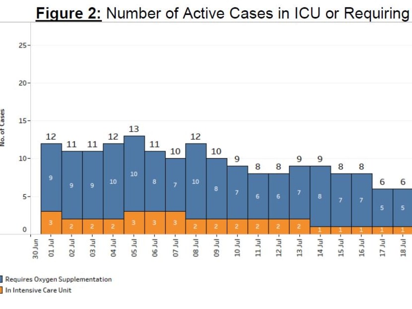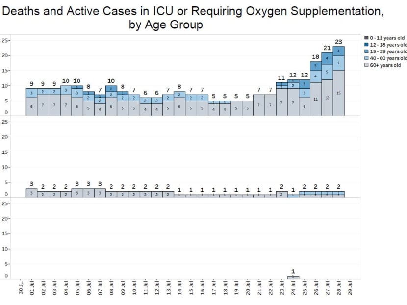 Of the 23 patients who require oxygen support, 15 are aged above 60, five are between the ages of 40 and 60, and the remaining three are aged between 19 and 39, data from MOH showed.