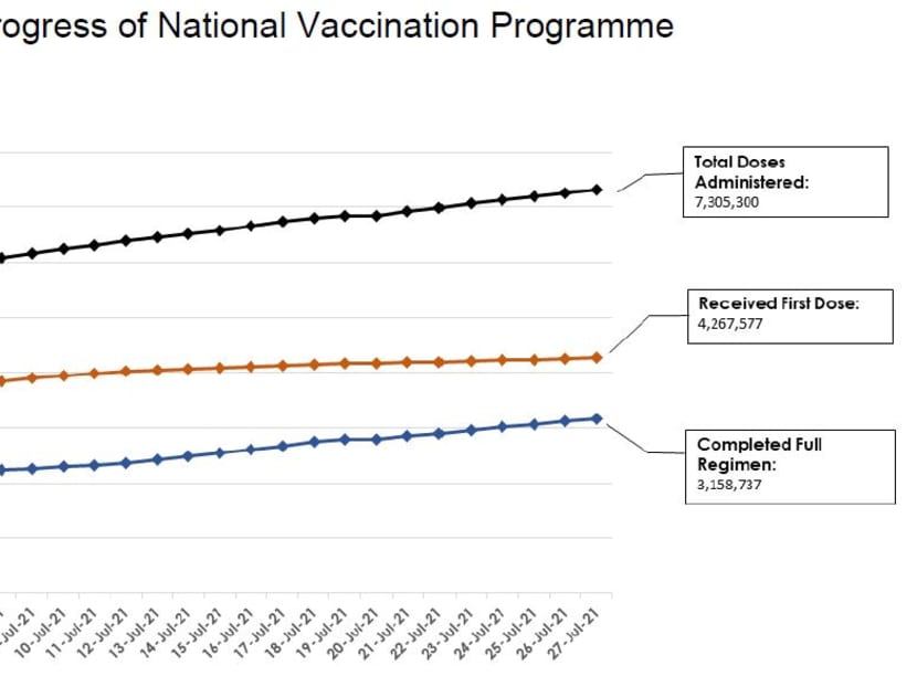 More than 7.3 million doses of Covid-19 vaccines had been given to about 4.27 million people as of Tuesday, MOH said.