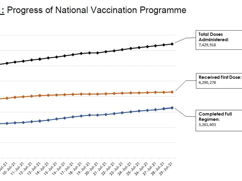 About 7.43 million doses of Covid-19 vaccines had been given to about 4.29 million people as of Thursday, MOH said.