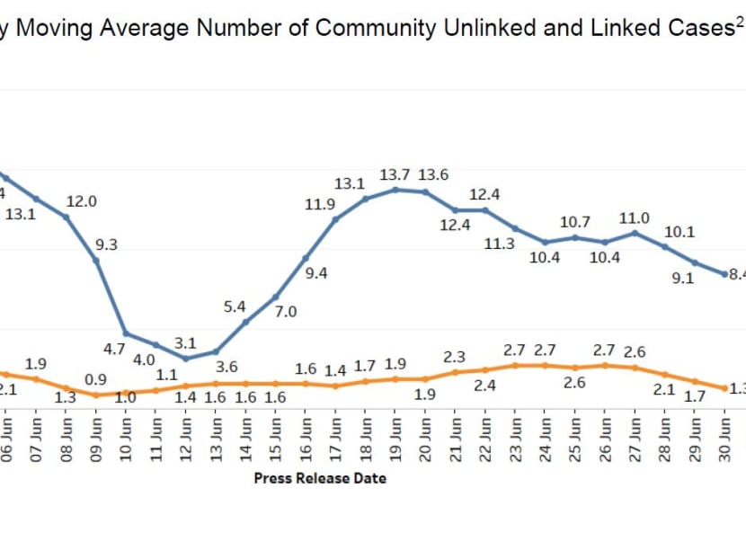 “The seven-day moving average number of all linked community cases and all unlinked community cases are 8.4 and 1.3 respectively,” the ministry said.