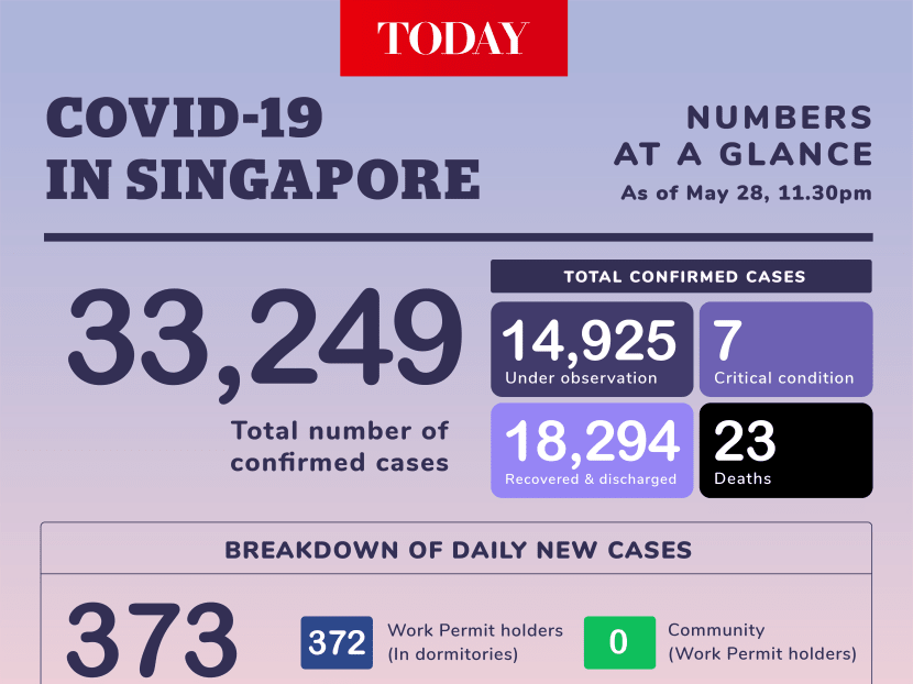 SINGAPORE — Singapore confirmed 373 new cases of Covid-19 on Thursday (May 28), the Ministry of Health (MOH) said in a statement.