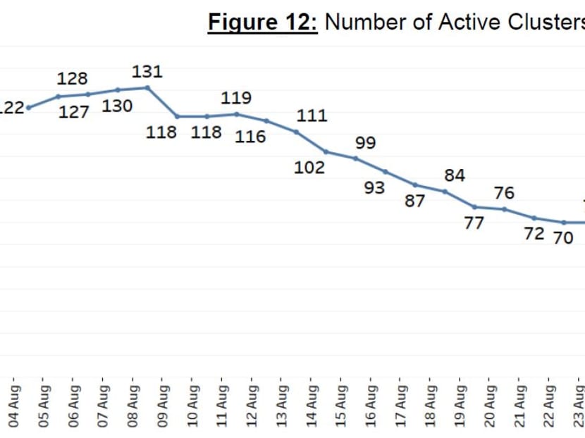 With that, there are now 68 active Covid-19 clusters here, each having between three and 1,155 cases.