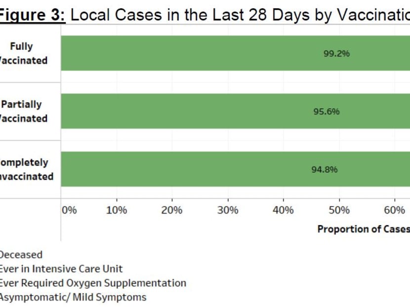 Over the last 28 days, the percentage of unvaccinated who became severely ill or died is 5.2 per cent, while that for the fully vaccinated is 0.8 per cent, MOH said.