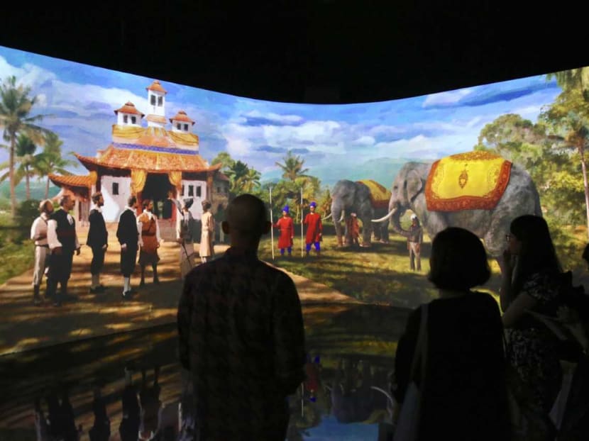 An interactive display called "Meeting of the worlds", part of an exhibition at the National Museum of Singapore to mark Singapore's bicentennial celebrations. Photo: Najeer Yusof/TODAY
