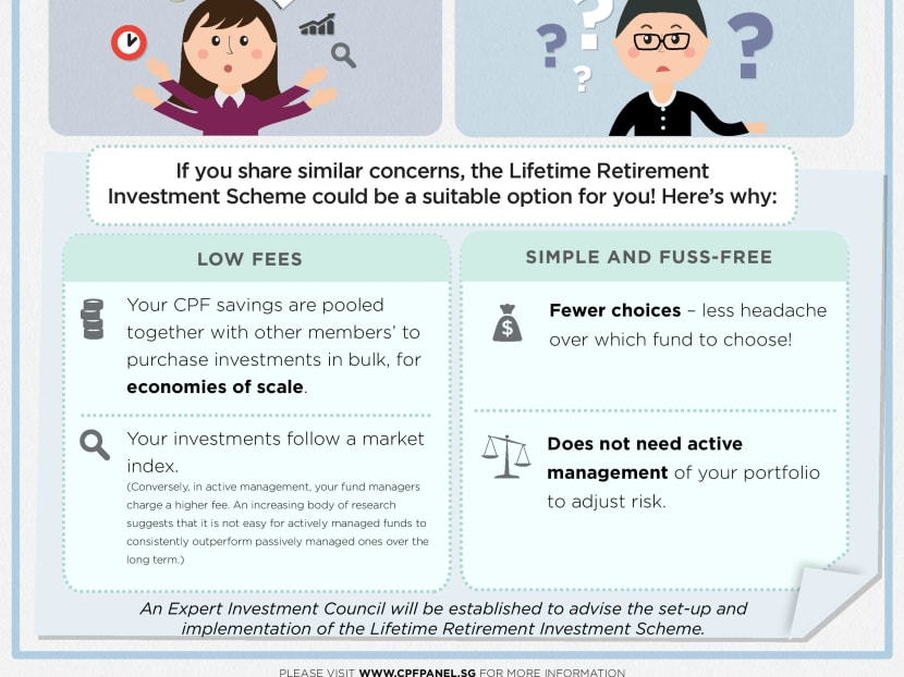 Unveiling their proposed alternative to the CPF Investment Scheme (CPFIS) catering to less-savvy investors, dubbed Lifetime Retirement Investment Scheme (LRIS), the panel said the main feature they envision is a small number of well-diversified funds that do not require active portfolio management and charges less in fees.