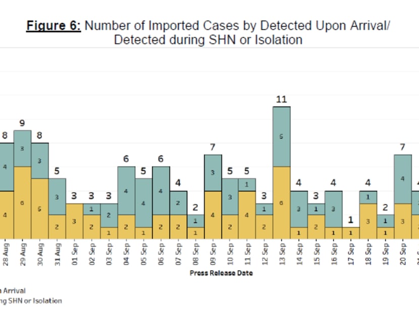 The 13 imported cases for the day were already placed on stay-home notices or isolated upon arrival. Nine were detected upon arrival in Singapore and four developed the illness while in isolation.