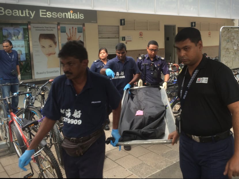 When TODAY arrived at the scene at about 2.30pm, several police vehicles were on site. Curious onlookers had gathered outside the toilet, which was cordoned off and manned by more than 10 police officers. Several of the officers — along with forensics professionals — were seen walking in and out of the toilet. The cordon was maintained for at least two hours as investigations were carried out. A body bag was brought out of the toilet at around 4pm.