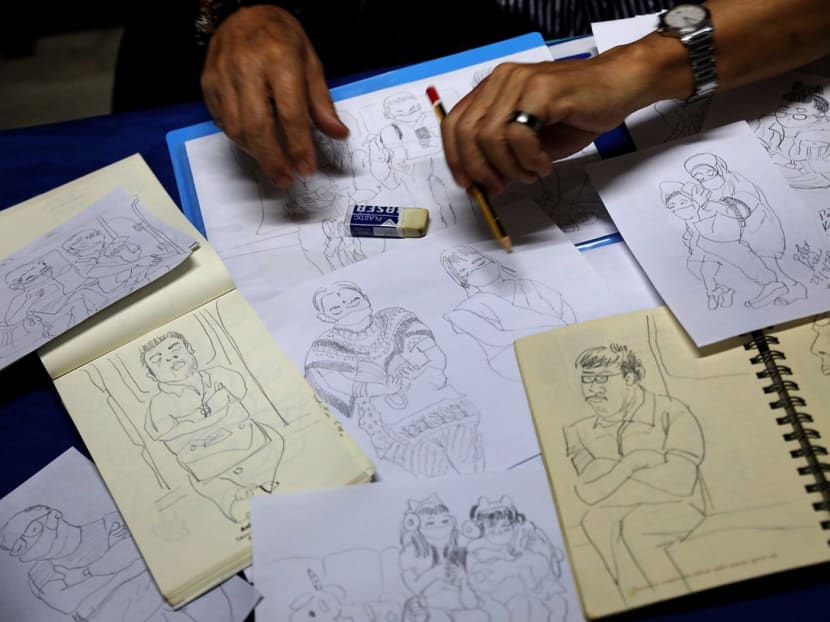 SINGAPORE — The moment Mr Peter Kiew boards an MRT train, he springs to action, whipping out a sketchpad, pencil and eraser, before proceeding to methodically sketch the commuters around him, one by one.