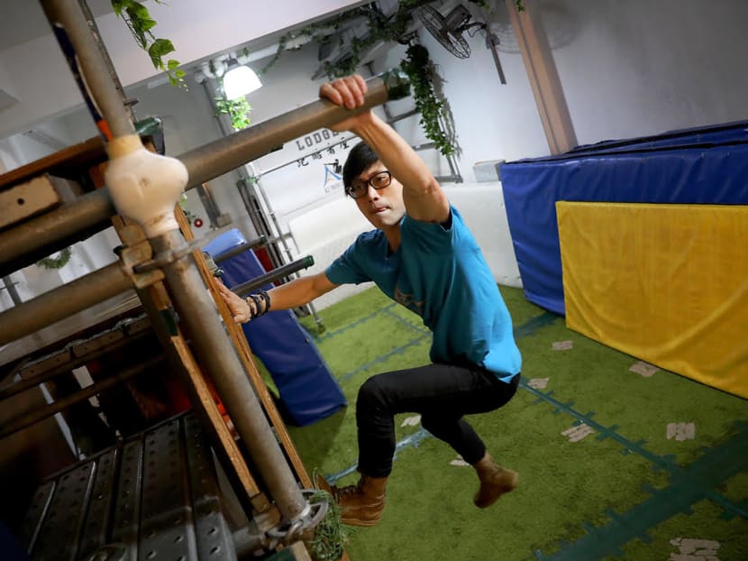 Mr Koh Chen Pin, Move Academy’s parkour head coach, has been taking part in parkour for more than a decade and has been a coach since 2012.