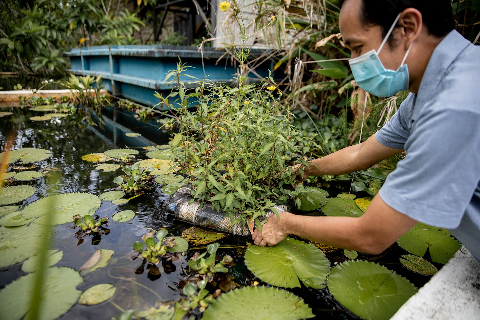 NUS alumni use plastic and glass waste to make floating garden of edible plants