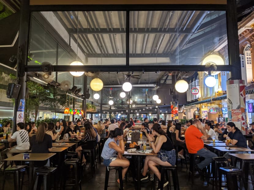 When TODAY visited Haji Lane at 11pm, bar patrons could be seen huddling together in close proximity and sharing drinks with one another.