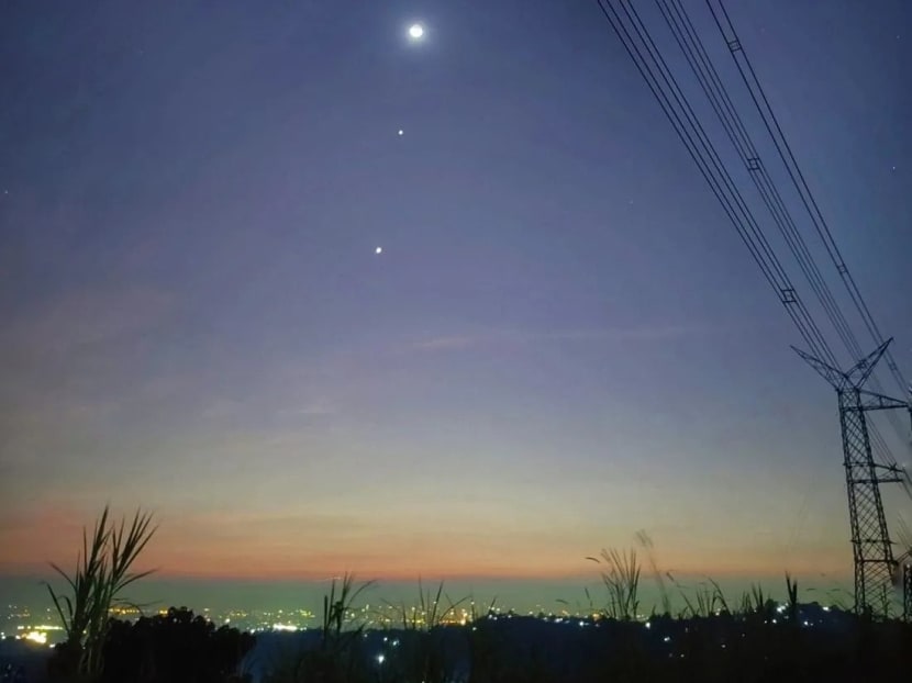 SINGAPORE — Skygazers in Singapore were treated to a clear view of the crescent moon, Jupiter and Venus on Thursday (Feb 23) evening — with all three celestial bodies seen in alignment.