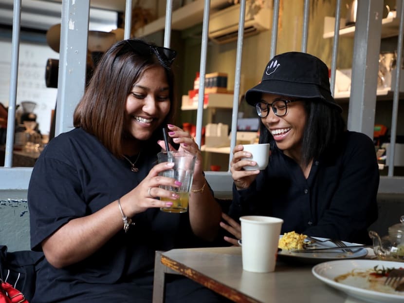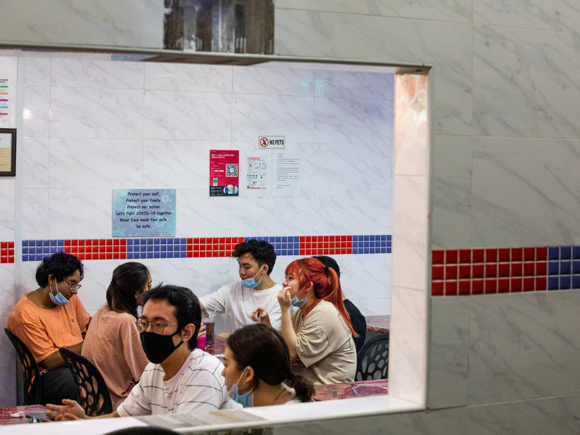 A group of friends take a selfie before having lunch at Lau Pa Sat hawker centre on Friday (June 19).
