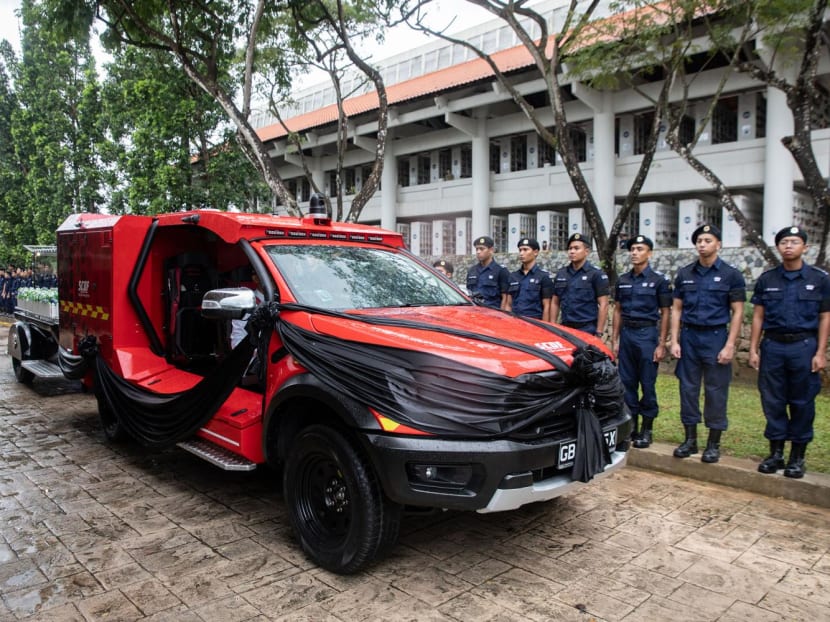 SINGAPORE — More than 100 Singapore Civil Defence Force (SCDF) officers flanked the long driveway to Mandai Crematorium on Tuesday (Dec 13) in an emotional send-off for Edward H Go, the full-time national serviceman (NSF) who died after a firefighting operation at a Henderson Road flat.