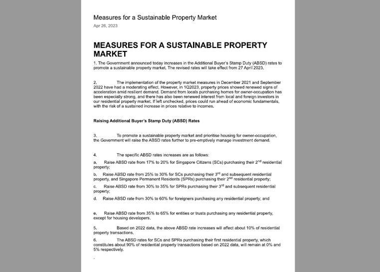 - The Government is raising the Additional Buyer’s Stamp Duty that will take effect from April 27