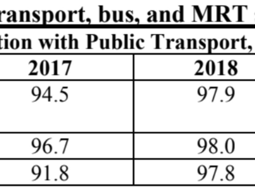 According to PTC, percentage satisfaction levels are measured based on the proportion of respondents whose overall satisfaction rating for public transport services was 6 and above on a 10-point scale.