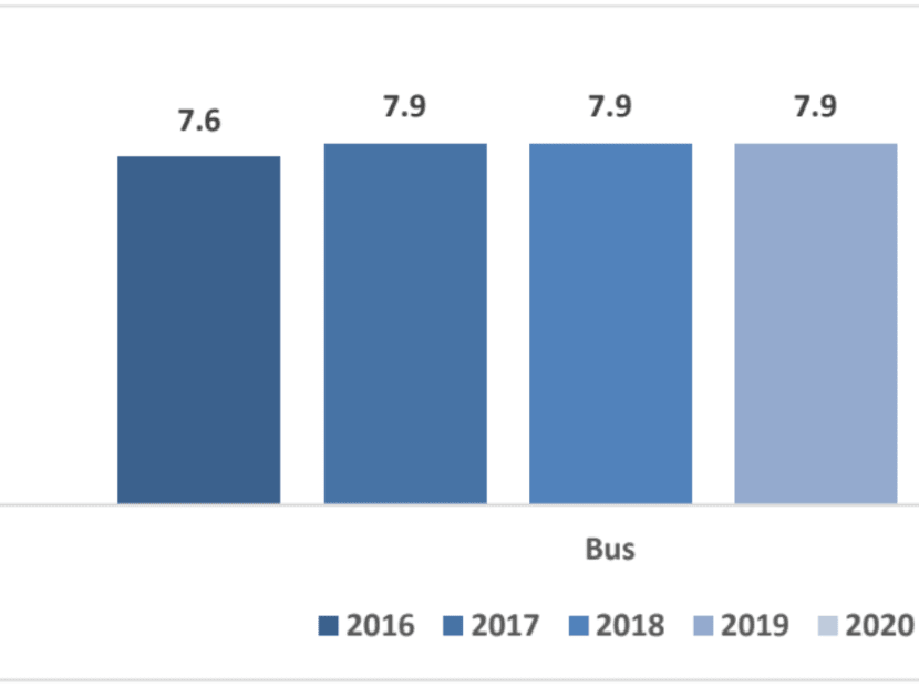 Bus services saw a slight drop in mean score from 7.9 in 2019 to 7.8 on 2020.