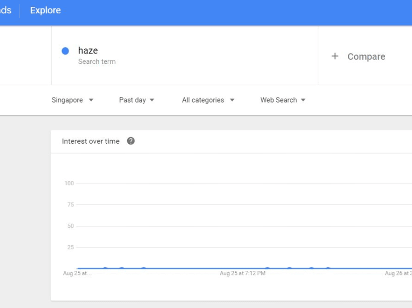 Haze was among the top trending topics on Twitter and Google, with over 5,000 searches on Google Singapore on "PSI Singapore". Related searches include 'PSI level in Singapore today', and 'PSI in Singapore now'.
