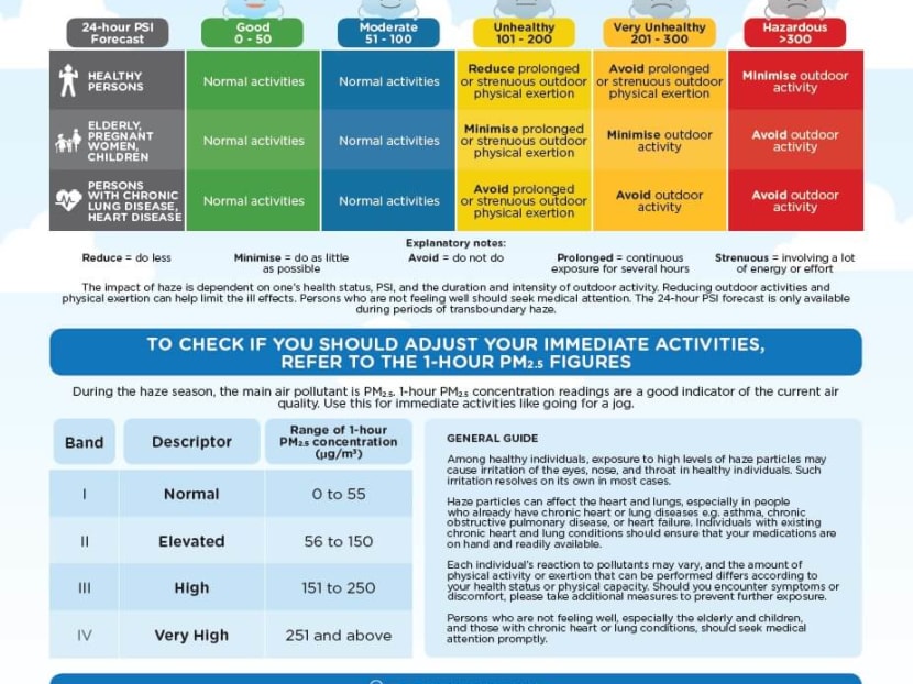 But the one-hour readings are not tied to health advisories, which apply only to 24-hour PSI readings because studies on sub-daily PM2.5 exposure still do not provide a sufficient evidence base, the NEA said in June.