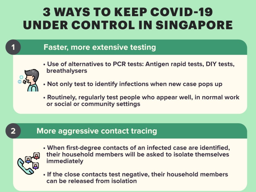 With faster and cheaper tests available, rostered routine testing — which is already done in higher-risk settings such as migrant worker dormitories, construction worksites and hospitals — could also be rolled out to more workplaces such as offices, restaurants and shopping centres.