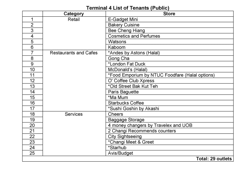 SINGAPORE — Changi Airport Terminal 4 will have over 80 shopping, service, and food and beverage outlets when it opens in the second half of the year, with all the tenants now fully secured, Changi Airport Group (CAG) announced on Friday (May 5).