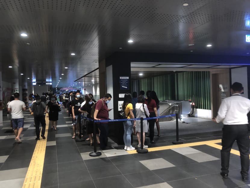 - Long queues have been forming at malls linked to MRT stations, bus interchanges