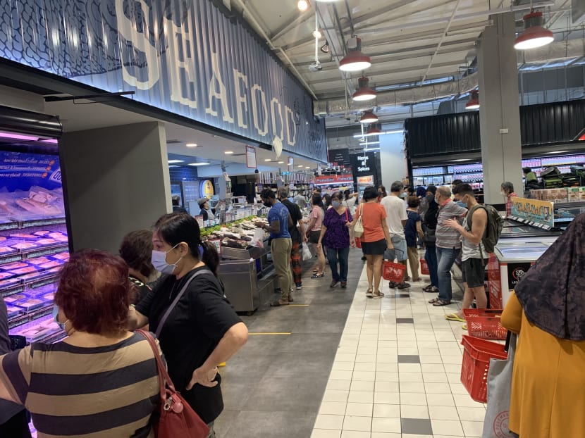 SINGAPORE — Planning a trip to the supermarkets requires some strategy these days and the crowds are not looking to shrink in the coming months. In the mornings, early larks flock there to get first dibs on the best produce. In the evenings and over the weekends, there are even more people headed there. Safe distancing? Forget about it.