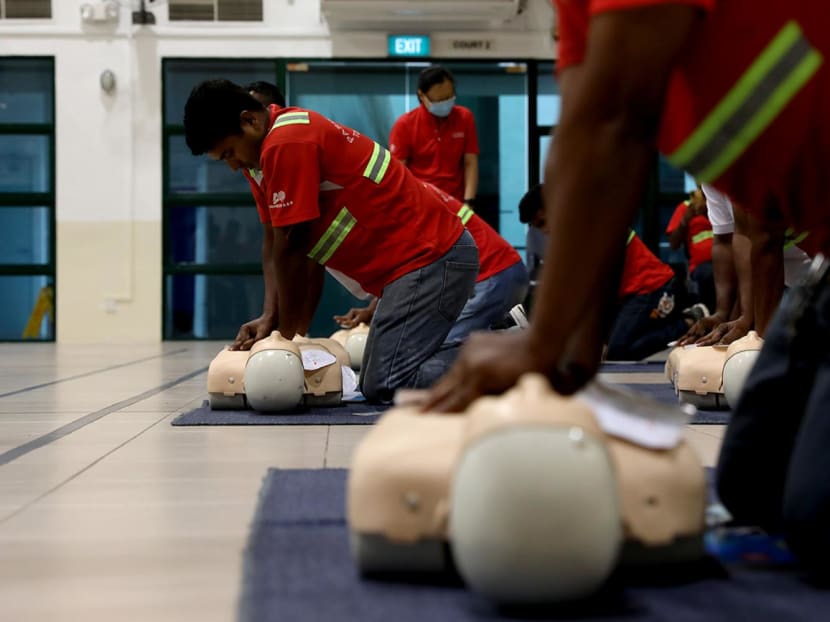 Mr Mohamed Yam the trainer said that the survival rate of out-of-hospital cardiac arrest cases in Singapore is around 26 per cent, but with early CPR and paired with the use of AED, the chances of survival increases by two times or more.
