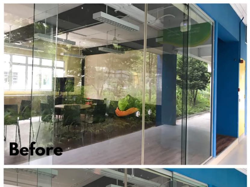 Mr Jacob Tan then worked with the contractor to ensure the non-reflective strips were pasted on the outside — and not the inside — of the school’s Design Space and After School Engagement rooms.
