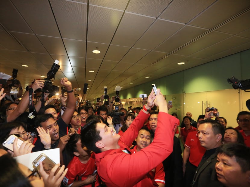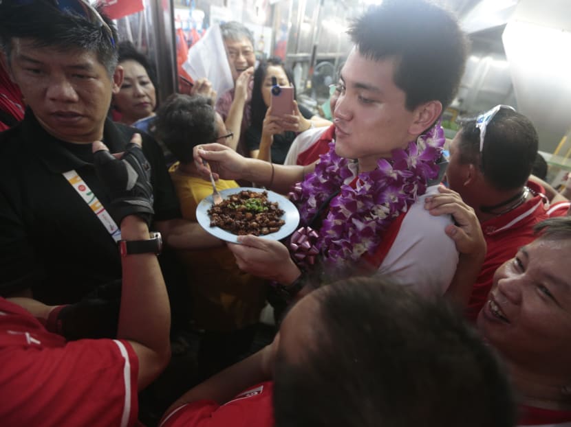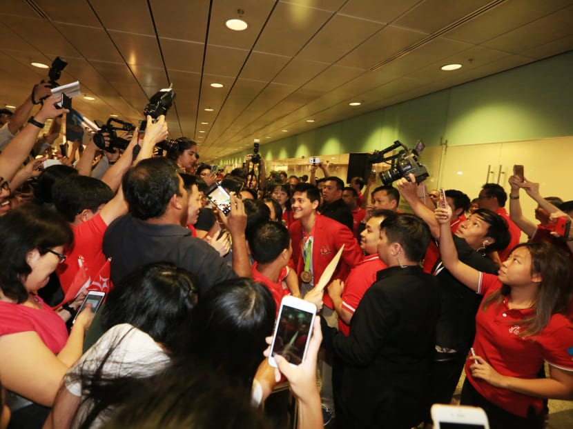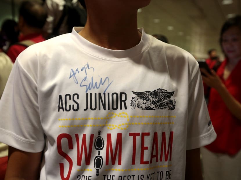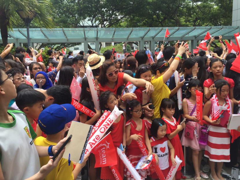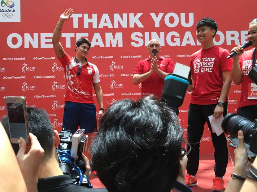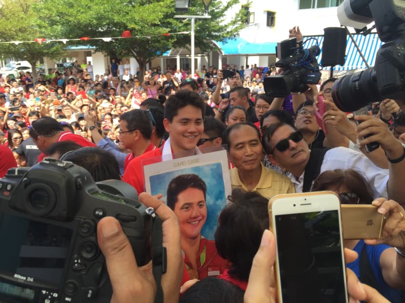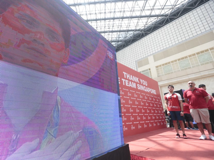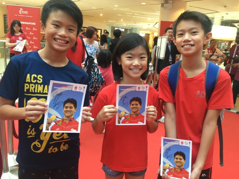 Schooling also joined the crowd as they re-watched the historic moment he won the gold medal at the Rio Summer Olympics less than a week ago. He made history last Saturday by winning Singapore's first-ever Olympic gold medal, beating Michael Phelps, Chad Le Clos and Laszlo Cseh in the 100m butterfly in a new Games record time of 50.39s.