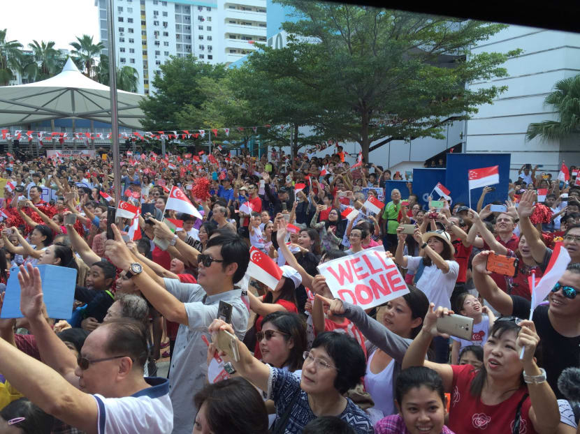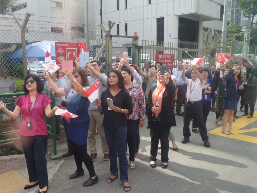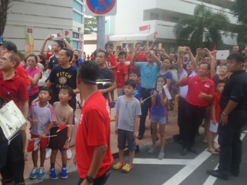 Along Orchard Road, people were lined up along the entire stretch, cheering and waving flags.