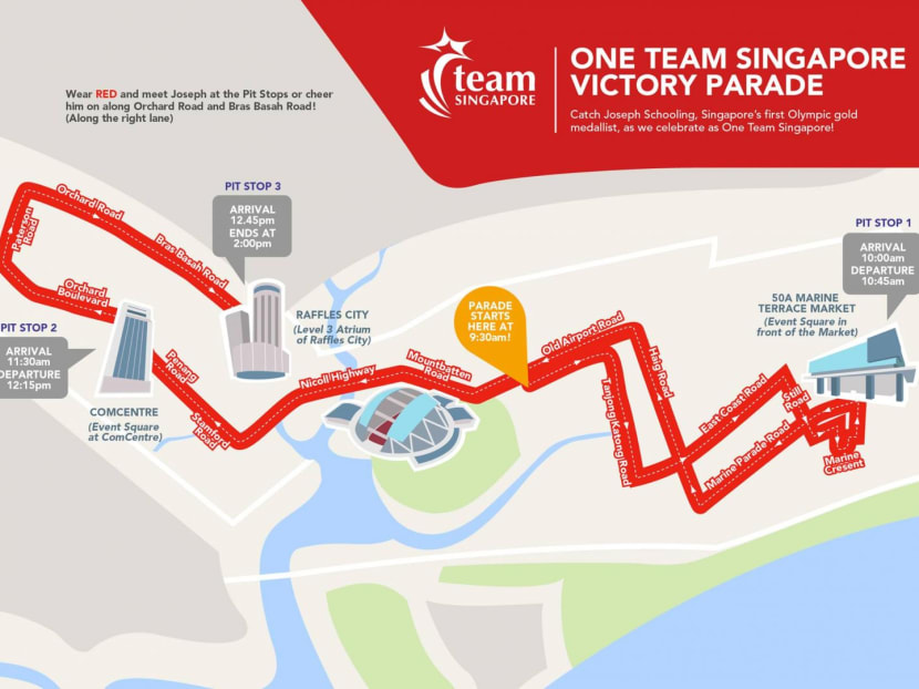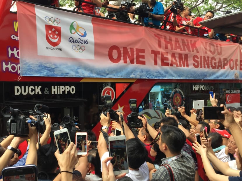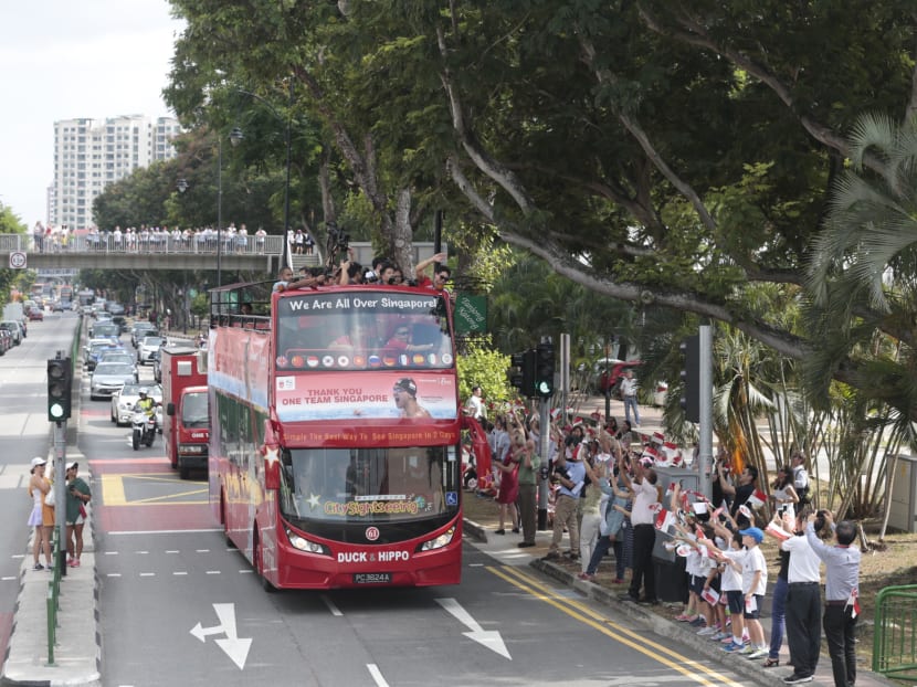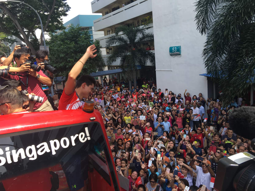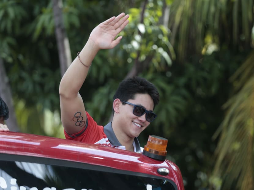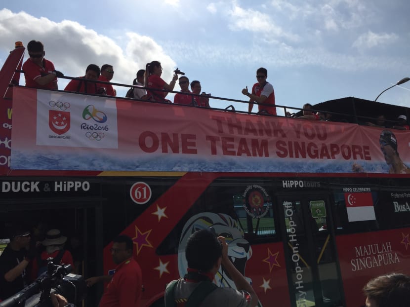 SINGAPORE — National swimmer Joseph Schooling embarked on an open top bus victory parade on Thursday (Aug 18) to celebrate his historic gold medal win at the Rio Olympics.