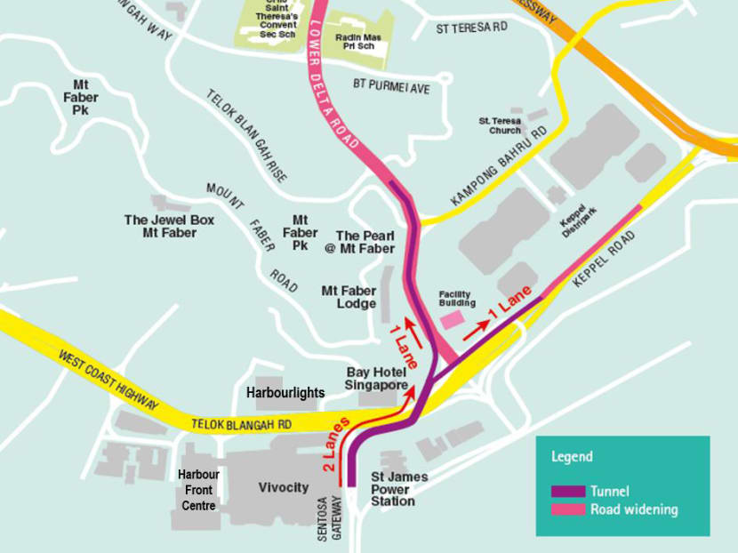 SINGAPORE — The congestion motorists commonly encounter at the traffic junction between VivoCity and St James Power Station could ease from April 27, when a new 1.2km-long tunnel for those leaving Sentosa opens.
