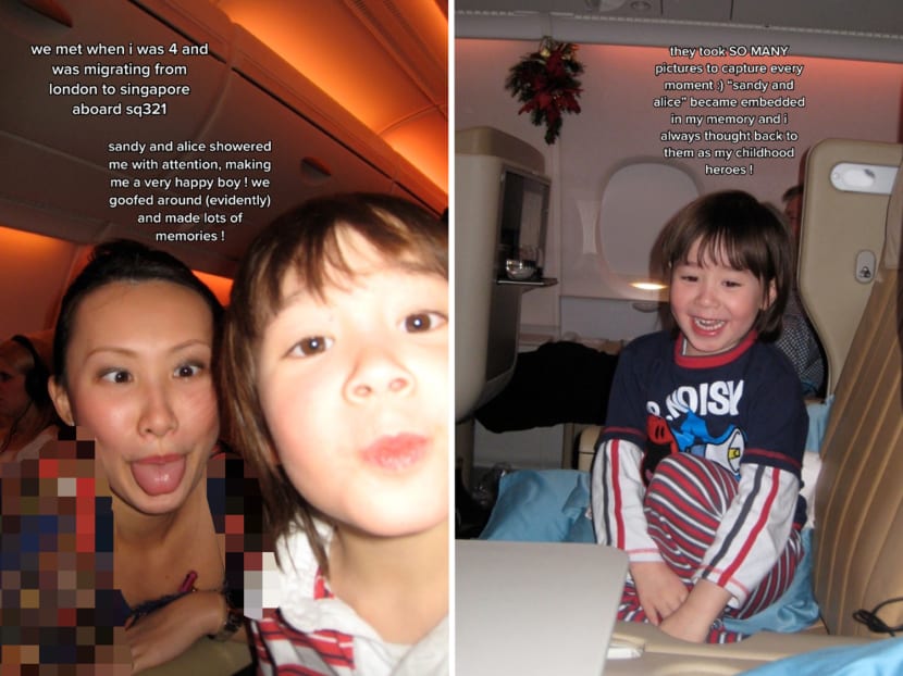 - A teenager in Singapore recently reconnected with two flight attendants who had taken care of him as a young child on a Singapore Airlines flight in 2010