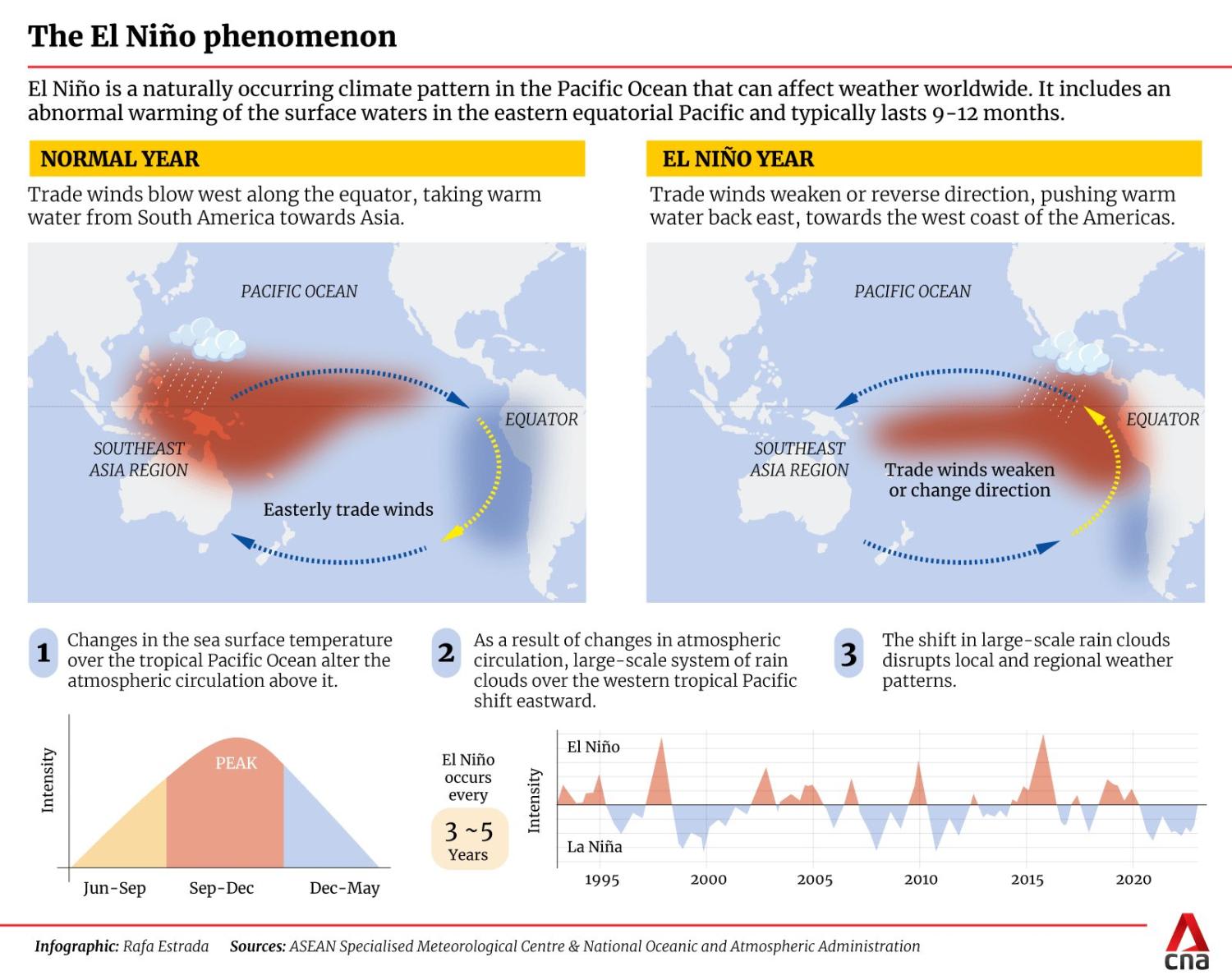 El Nino events tend to have the biggest influence on Singapore’s rainfall during the southwest monsoon season from June to September, with rainfall up to 45 per cent below average.