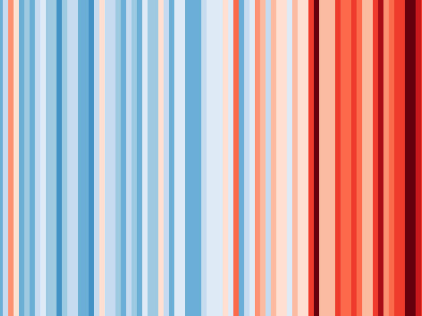 In his chart for Singapore, which starts from 1901 and ends in 2018, about two-thirds of it comprises various hues of blue – an indicator of cooler years.