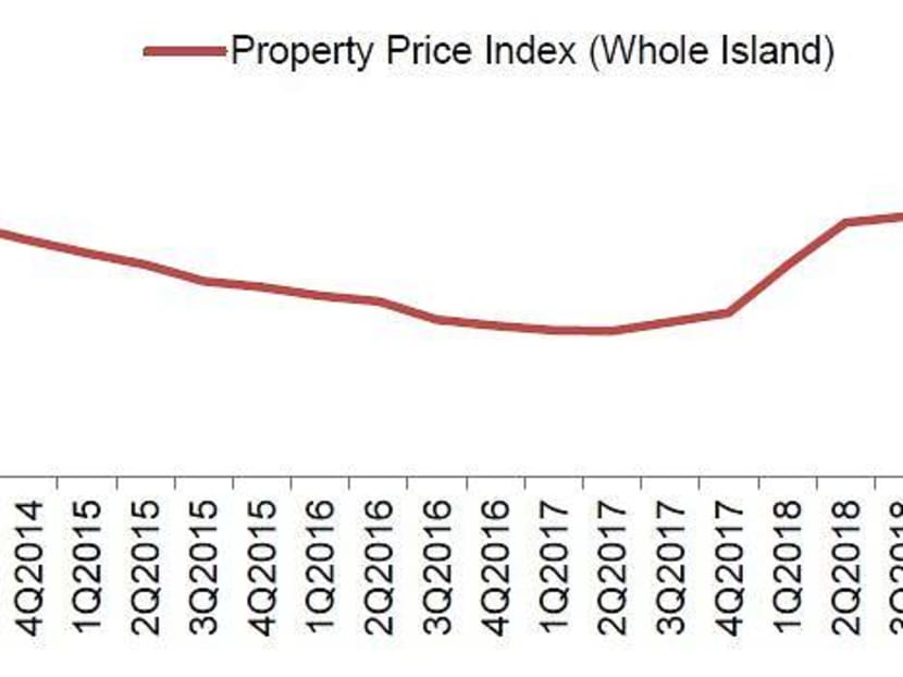 The private residential property index increased 1.5 per cent to 150.8 points in the second quarter, beating an initial estimate and reversing two consecutive quarters of decline, data from the Urban Redevelopment Authority (URA) showed on Friday (Jul 26).