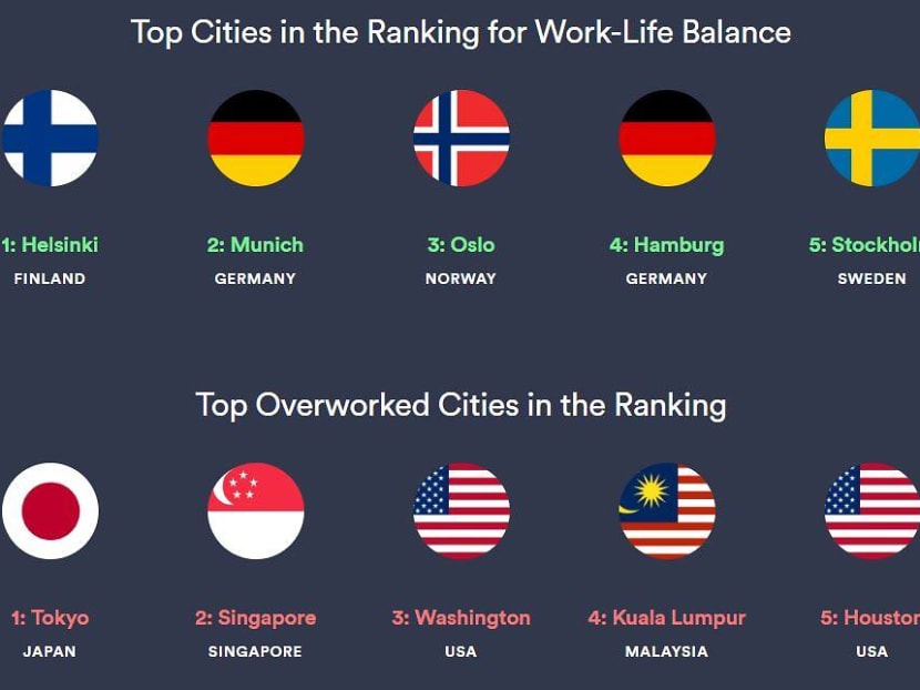 SINGAPORE — Singapore was among the bottom 10 for work-life balance and ranked the second most overworked city in a study of 40 cities released on Wednesday (Aug 7).
