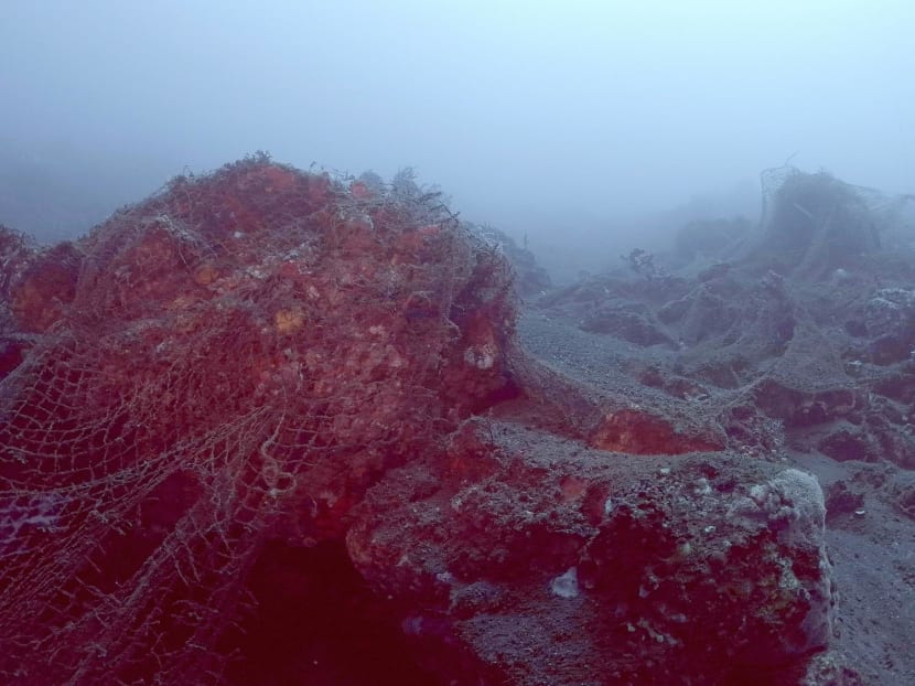 The total size of the ghost nets found so far is about that of a football field, said Mr Gopaal. He believes they are from a single net, based on the material, though they may have been ripped apart by the reef cliff.