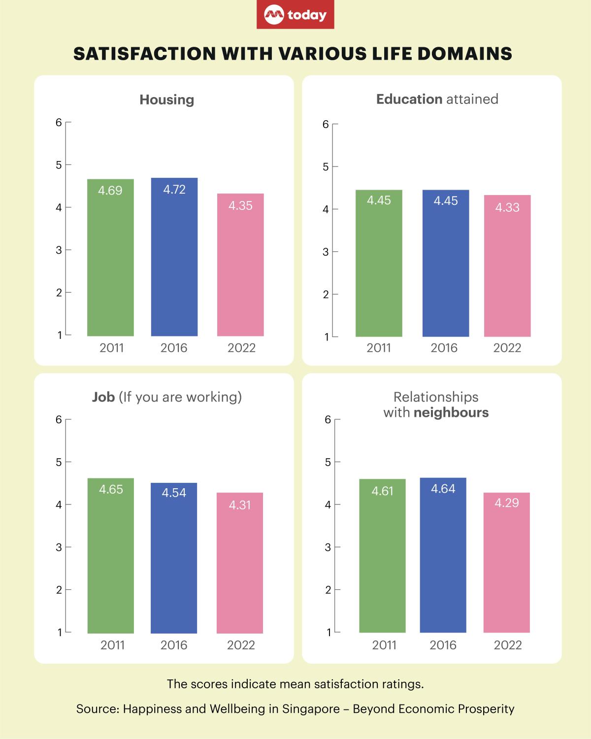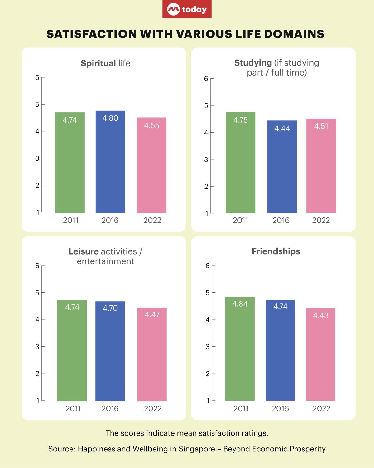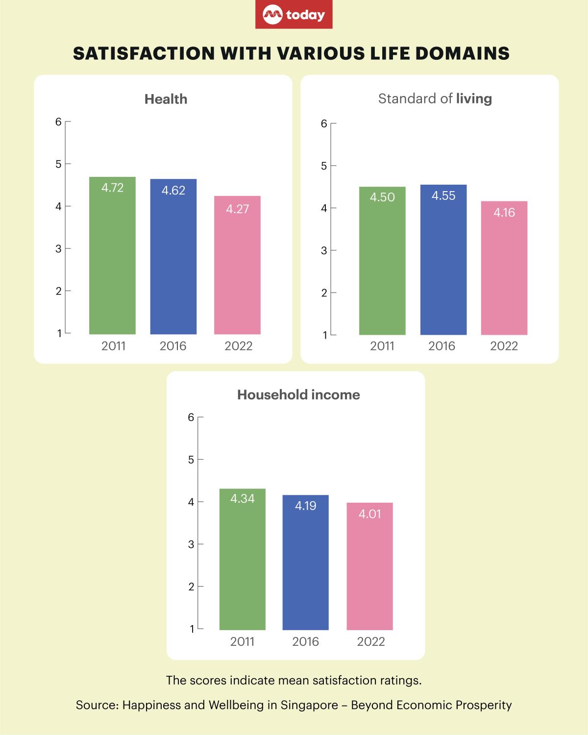 - The 2022 Quality of Life survey also found that from 2016 to 2022, Singaporeans have enjoyed life less and have felt a decreased sense of achievement, control and purpose