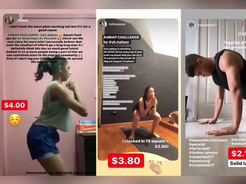 Among them is Zh Abdul Hafeez, who ended up donating S$1,008 of his own money to the Covid-19 Migrant Support Coalition by challenging his friends and family to a workout challenge.