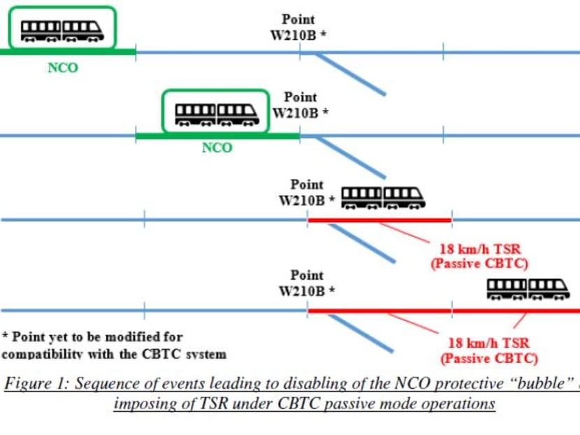 However, the NCO protective “bubble” was inadvertently disabled when Train 3535/3536 passed over an existing trackside device (a track point labelled W210B located west of Clementi station) which had yet to be modified for compatibility with the CBTC system.