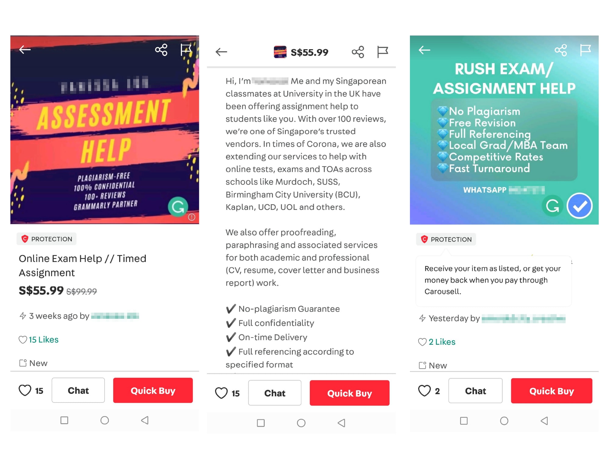 On Carousell, a quick search shows dozens of listings purporting to offer ghostwriting services that run the gamut from assignments and essays to final-year projects and dissertations.