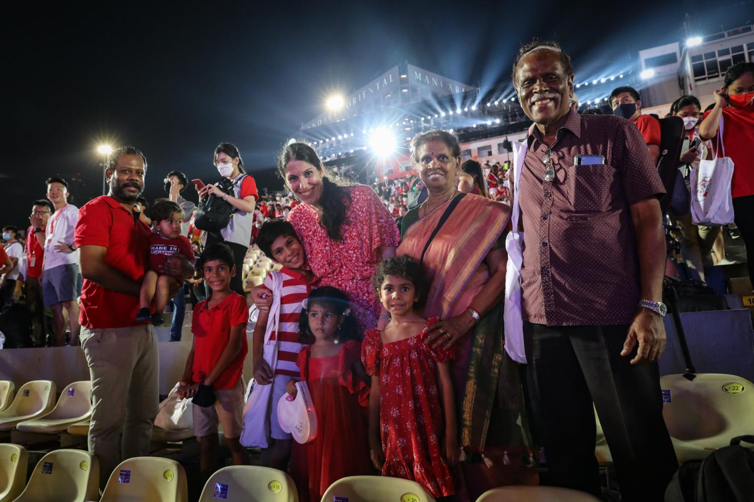 “I attended NDP years ago, back when it was at the Padang… Then when Covid-19 struck, we could only watch from our homes. I’m so glad my family and I can attend,” said Mr Ho, who was seated with his wife, son, daughter-in-law and two grandchildren.