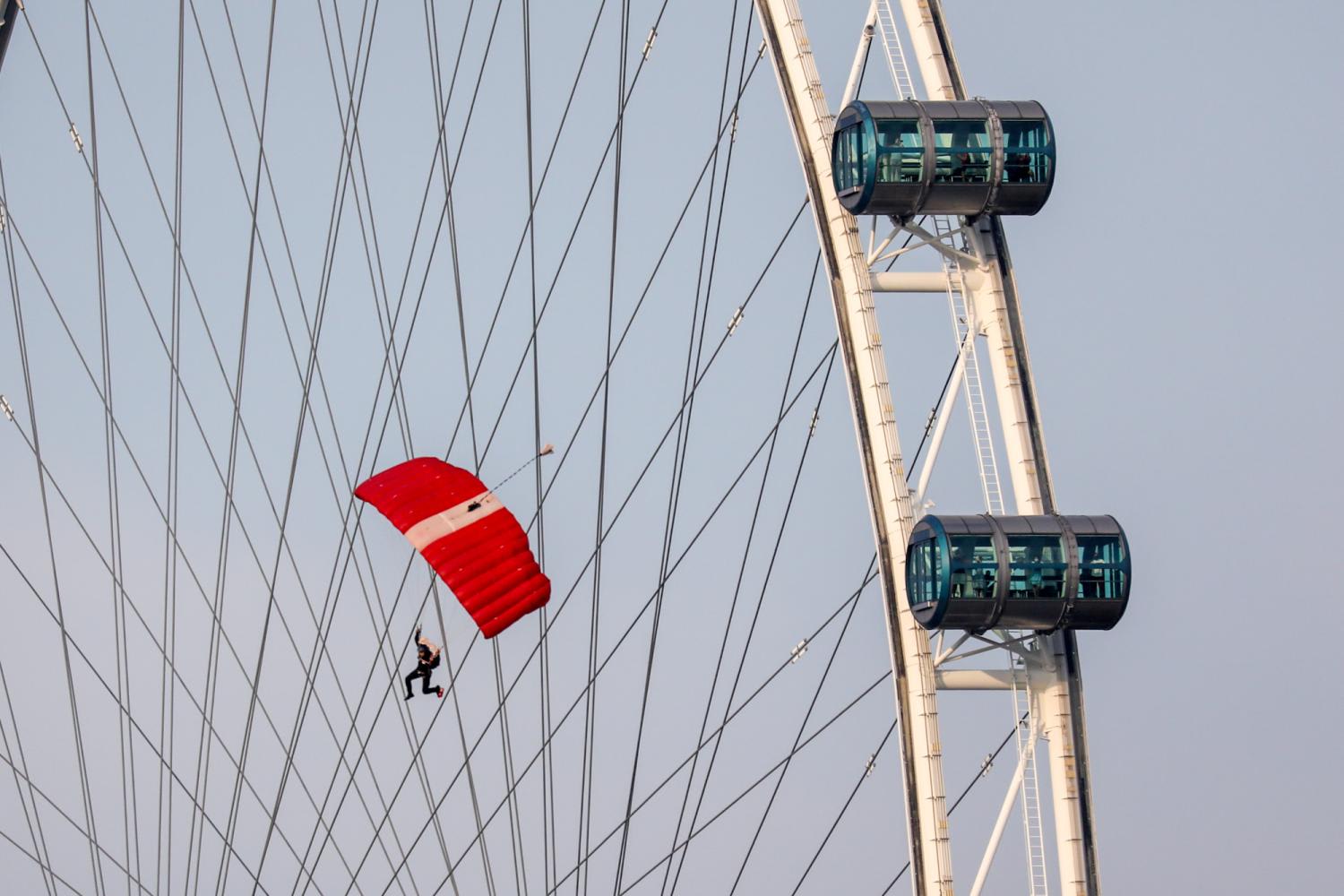 Once those in the stands were warmed up by hosts Joakim Gomez, Sonia Chew, Siti Khalijah and Rishi Budhrani, crowd favourites the Red Lions took centrestage garnering cheers that shook the floating platform, as they touched down one by one.