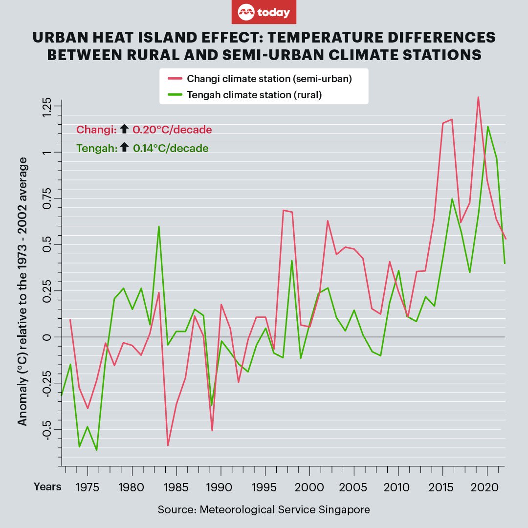 - A report by the Meteorological Service Singapore said comparisons of historical temperatures at relatively built-up Changi with those at mainly rural Tengah supported the theory