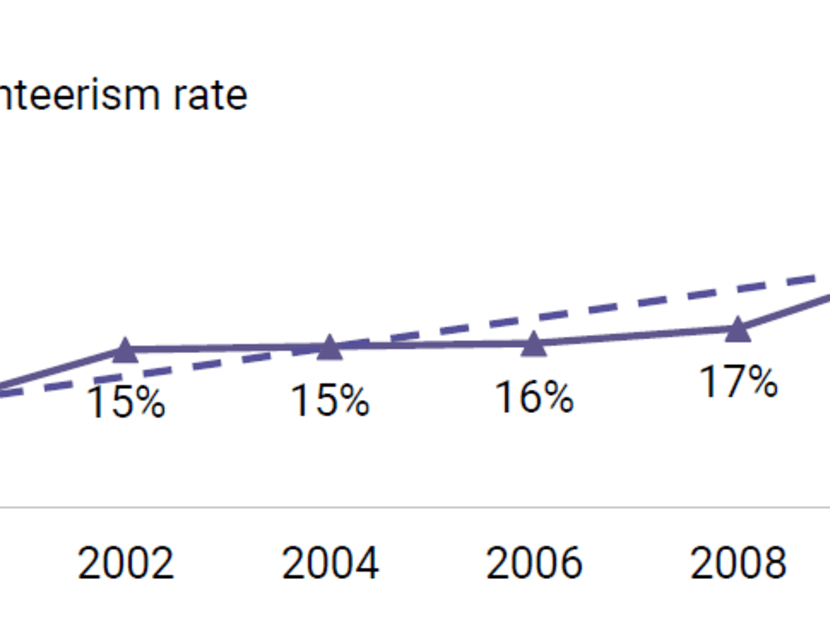 In spite of fluctuations, volunteerism rates in Singapore have been increasing gradually over the past decade. Almost a third of Singaporeans volunteered in 2018, up from just 17 per cent in 2008.