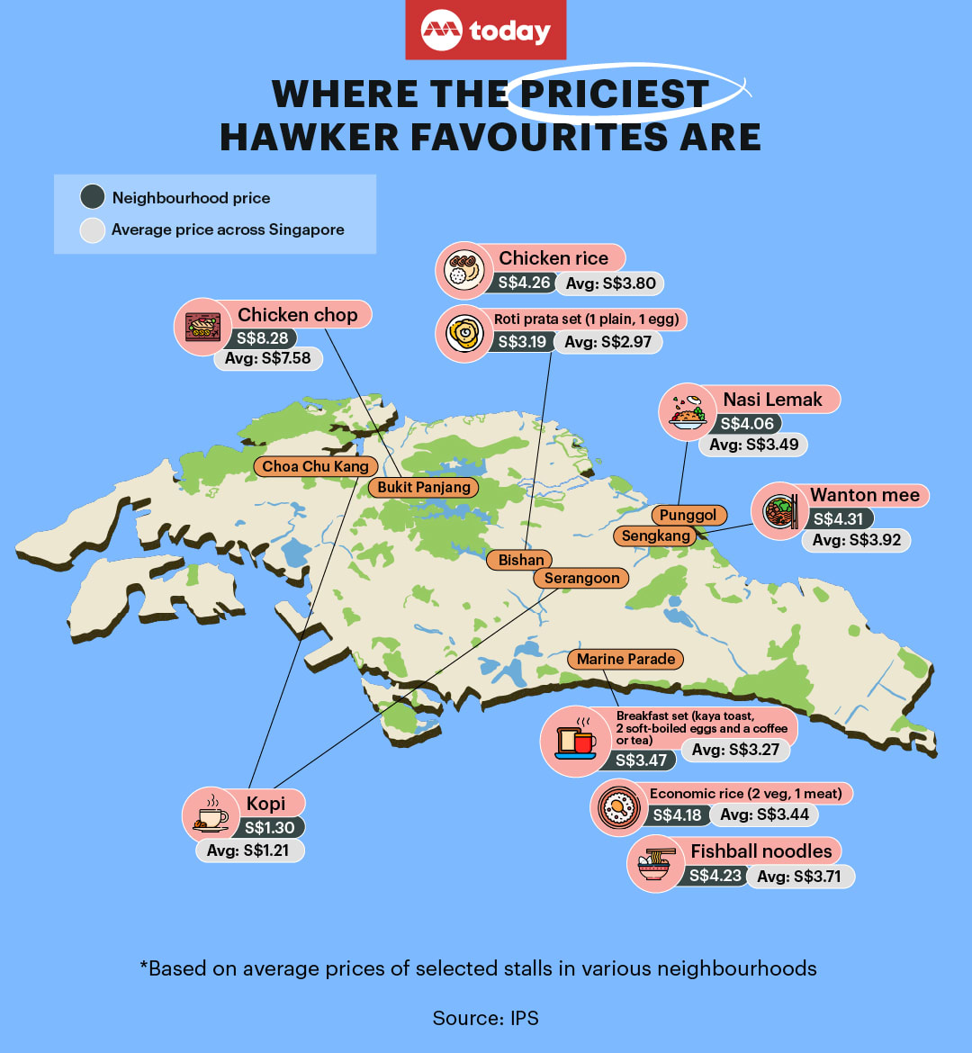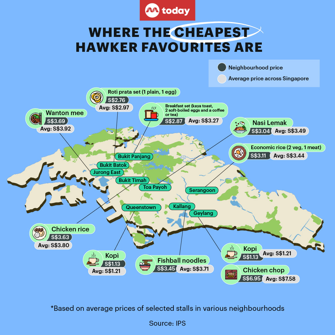 - Breakfast sets and fishball noodles were cheapest in the north of Singapore