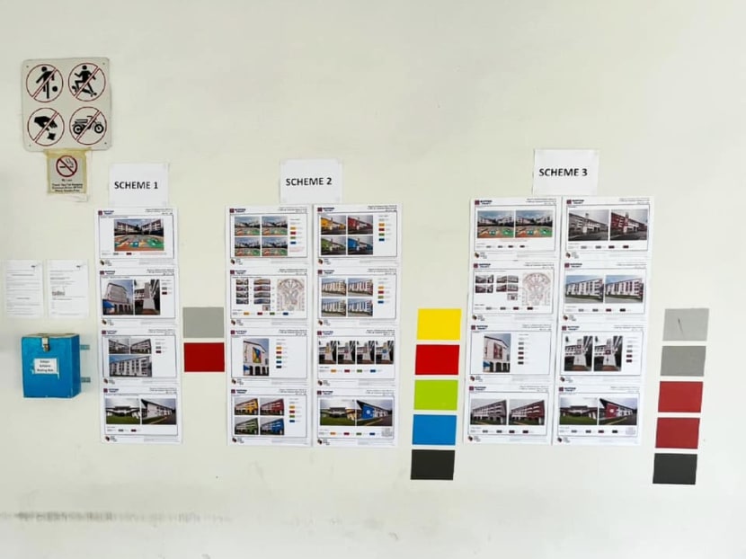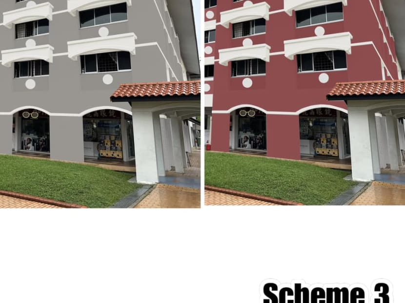“Scheme 2 (is) colourful. (It's) nice (and it's) something different. As long (as it's) not red,” another one wrote, in an apparent reference to a red colour scheme at a Tampines HDB project unveiled earlier this year.
